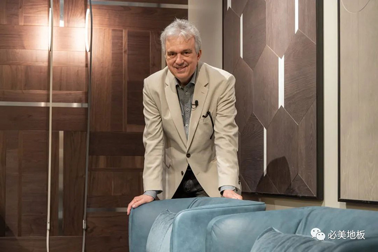 講解他親自設計的Elementa系列地板