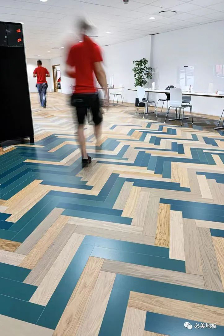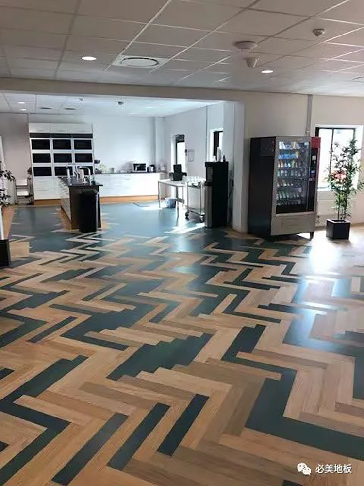 最近,必美寬綽科技5G®鎖扣式人字拼地板最新發布,并在Välinge瑞典維肯總部的超大食堂做鋪設,淋漓盡致的呈現出這款產品的多項功能性和卓越品質。