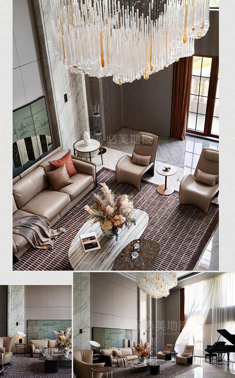 空間功能根據使用者的需求做出衍化,一層作為主要的待客空間,大宅禮序層層遞進。會客廳承載了沙龍活動的功能,以大尺度沙發圍合擺放的形式,增強了空間的氣勢感與交互性。