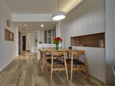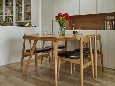 仿真分割線工藝,仿佛由三塊地板拼制而成;罕見地將千年古樹的紋理成功塑造在復(fù)合地板上